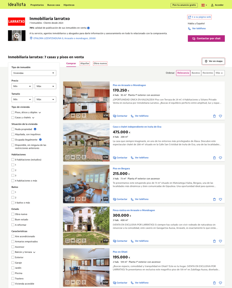 Inmobiliaria Larratxo stands out by keeping listings clean and well-structured, with images that highlight brightness, order, and space.